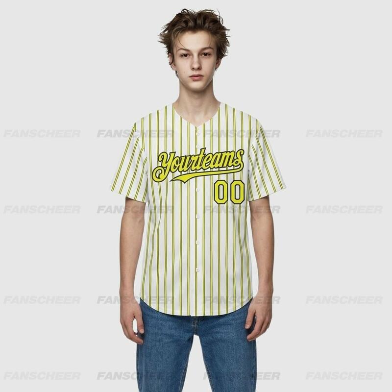 Individuell gestaltetes Baseball-Trikot mit neongelben Nadelstreifen – Personalisiert & Großbestellungen